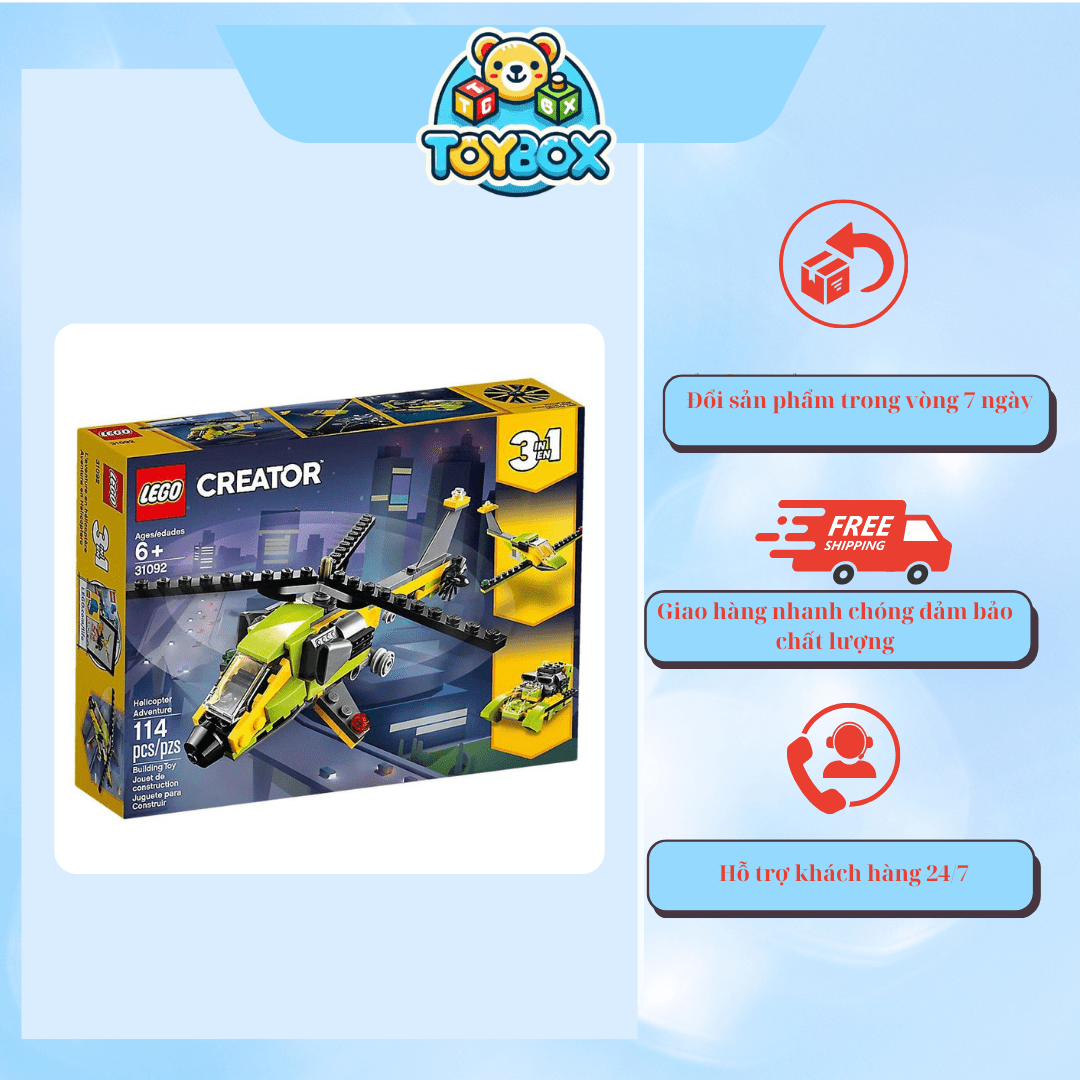 Với Đồ Chơi Lắp Ráp LEGO CREATOR 31092 Trực Thăng Thám Hiểm, trẻ có thể xây dựng mô hình phiêu lưu bằng Máy bay trực thăng và sau đó xây dựng lại thành Tàu điện hoặc Máy bay lượn để thú vị hơn với tốc độ cao.